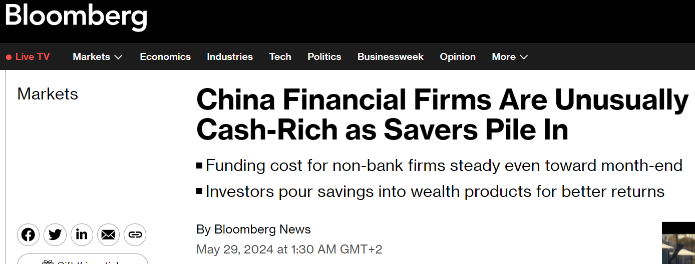 Bloomberg reports: “Financial investment companies in China are currently sitting on piles of money from people's savings to invest in high-yield financial assets.”