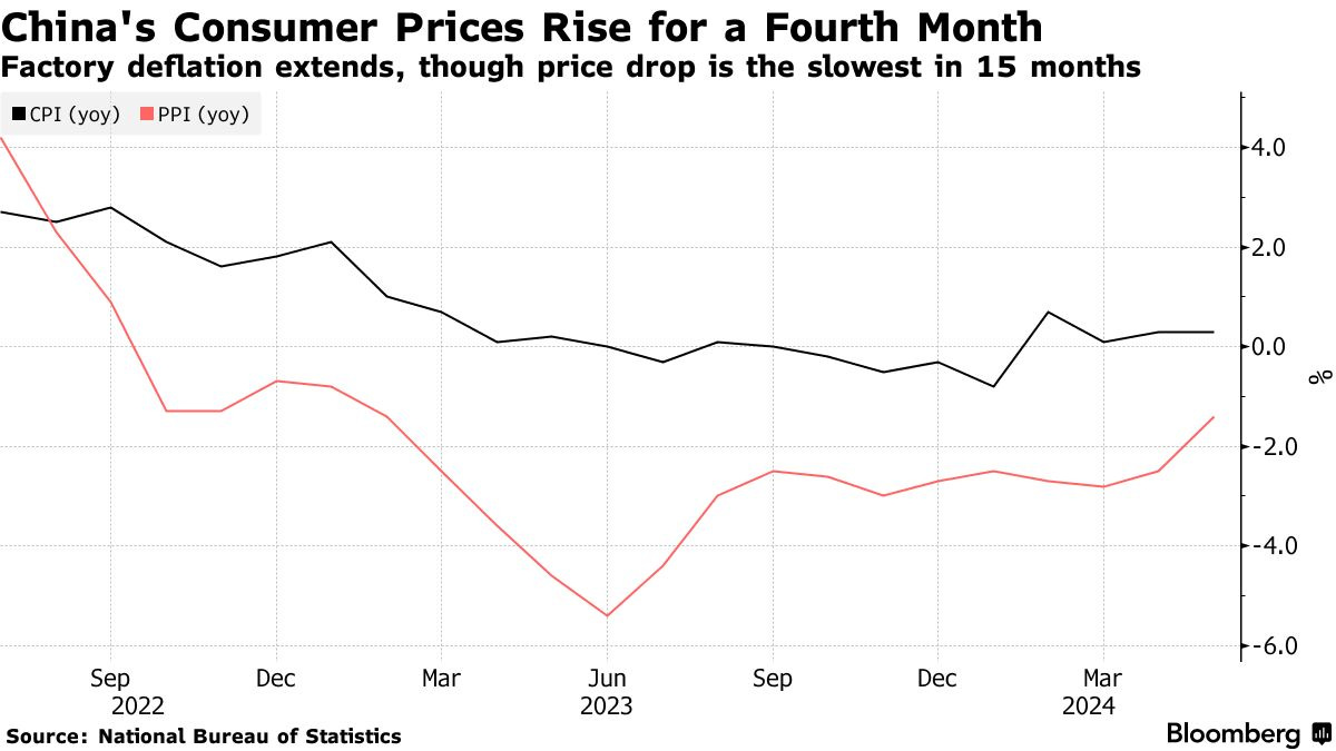 Last week's macroeconomic data in China shows that May CPI in the country is still in the severe deflation zone. The longer the stagnant inflation persists, the greater the chance the economy could fall into a lost decade like Japan.