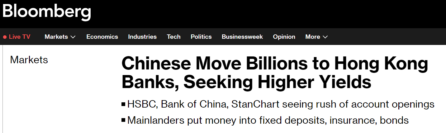 Chinese people are transferring billions of CNY to Hong Kong to seek higher investment returns compared to the domestic market!