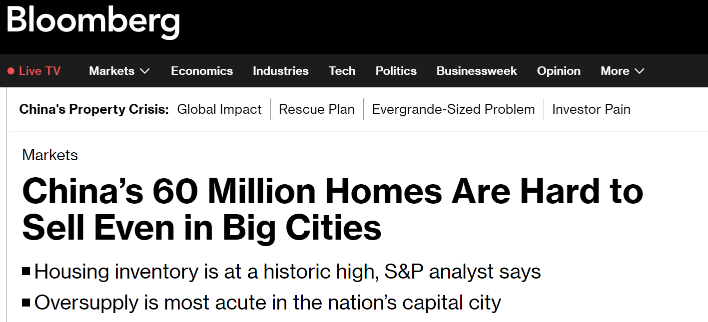 Bloomberg reports there are about ~60 million unsold houses - right in major cities in China: