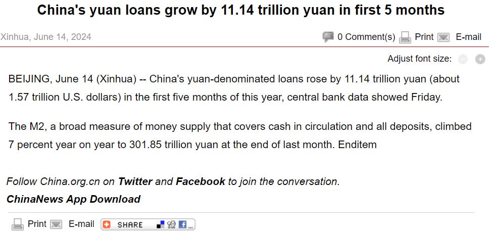Capital losses from real estate lead Chinese people to restrict spending and save for investment instead. However, borrowing in China in May grew quite weakly. Domestic bond investment returns are declining — leading Chinese people to “find ways” to invest abroad.
