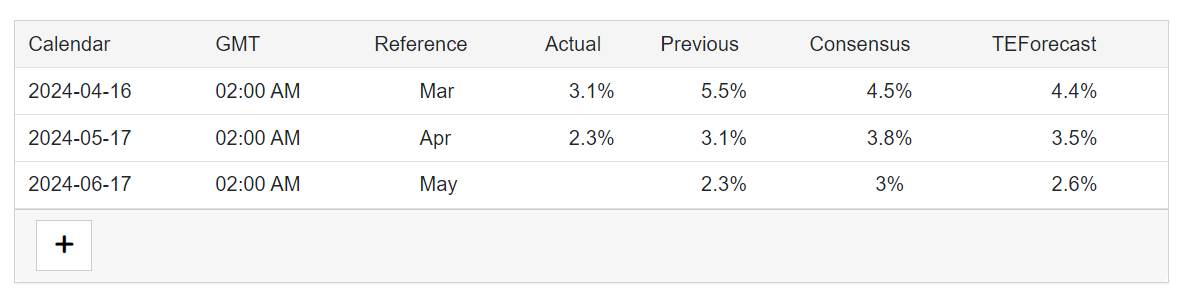 China's April retail sales growth only reached +2.3% y/y – much lower than the estimated +3.8% y/y.