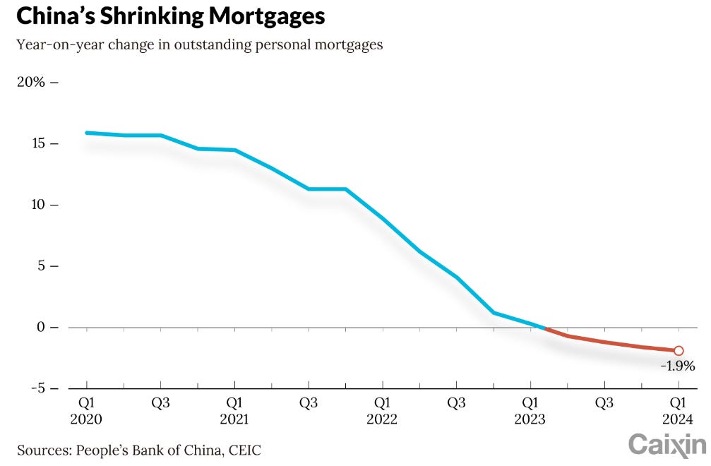 … but until the end of Q1/2024, personal mortgage debt growth in China is negative — people are not very interested in borrowing to buy houses.