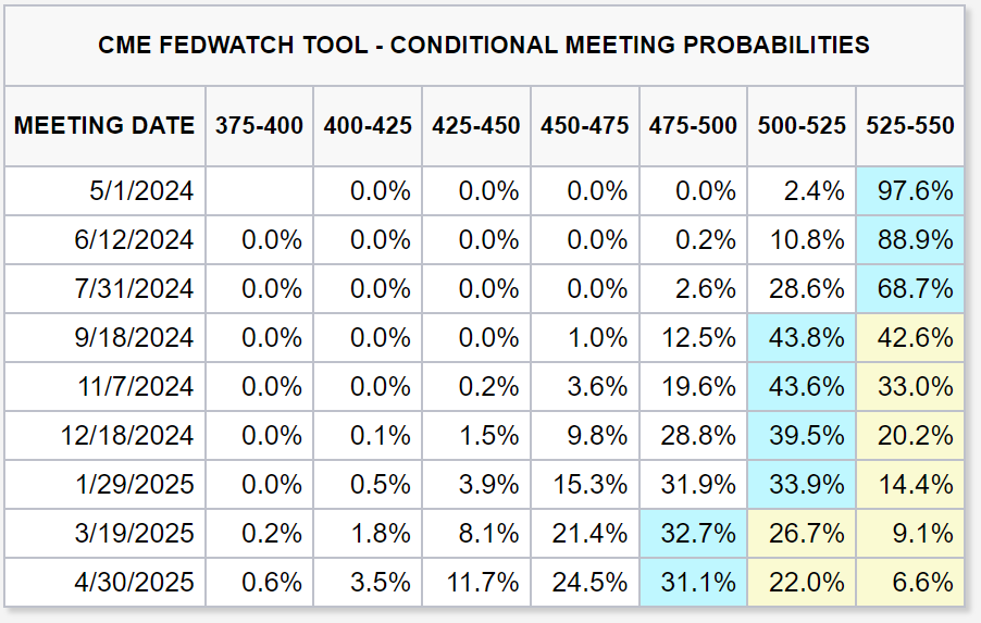 The base interest rate (Fed rate) in the US remains very high: 5.25% - 5.5%