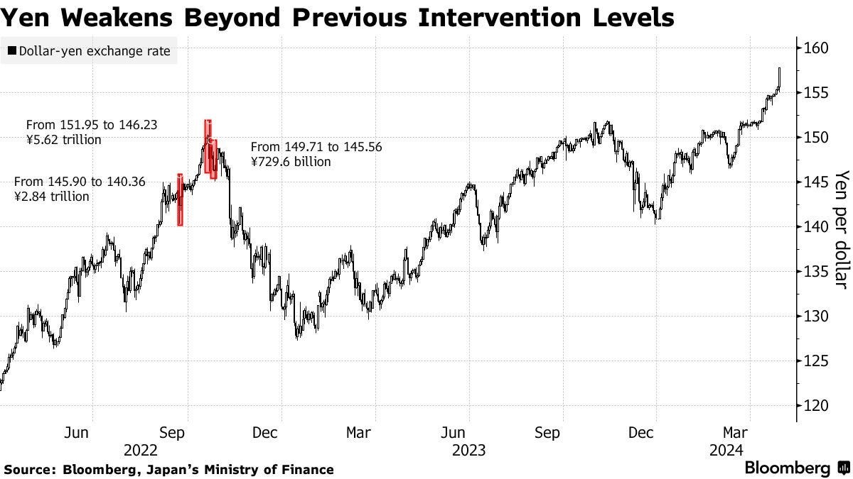 USD/JPY exchange rate has surpassed 158 – far exceeding the levels that prompted BOJ interventions in the past.