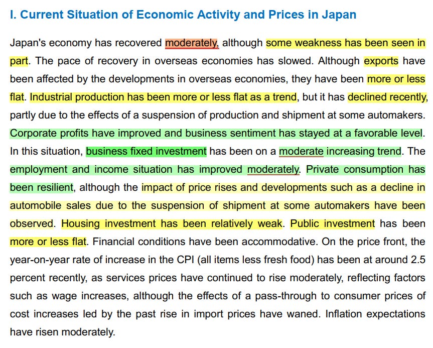 In the economic outlook report, BOJ mostly comments that the economy is recovering at a moderate level …