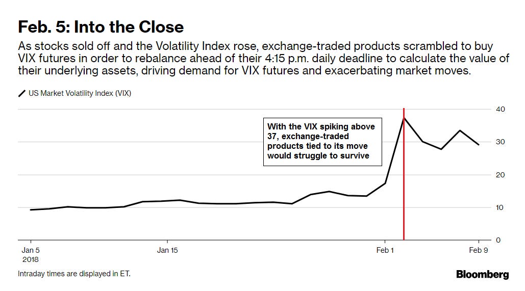 → The buy-sell feedback loop caused VIX futures to rise even higher → XIV fell even more sharply.