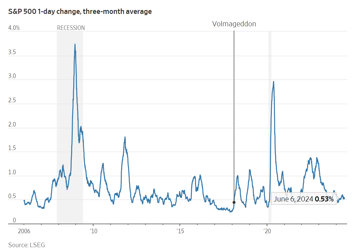 S&P500 daily volatility has not exceeded 1% since the beginning of 2023.