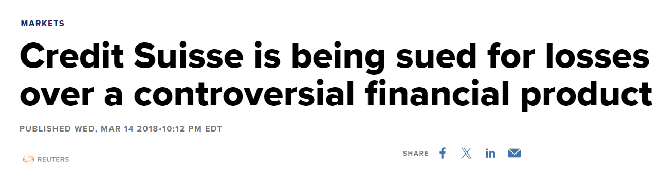 Investors were not at all satisfied, not only because they lost all their money, but because they thought Credit Suisse made a tidy profit!