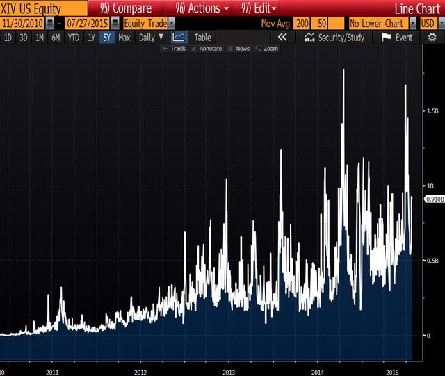 In 2015, the total trading value of XIV was about 830 million USD/day, more than blue-chip stocks like Johnson & Johnson and Wal-Mart at that time.