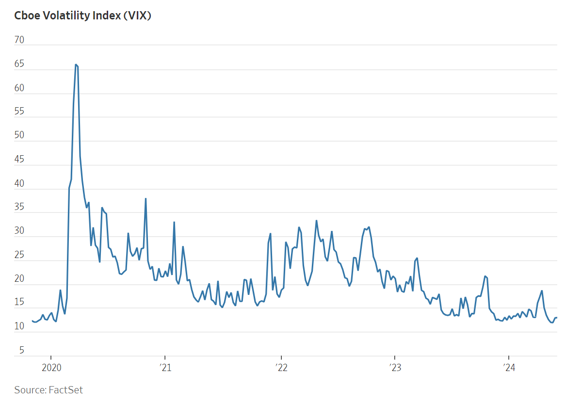 VIX is fluctuating at quite low levels, near the lowest post-Covid period.