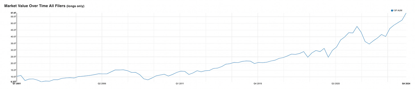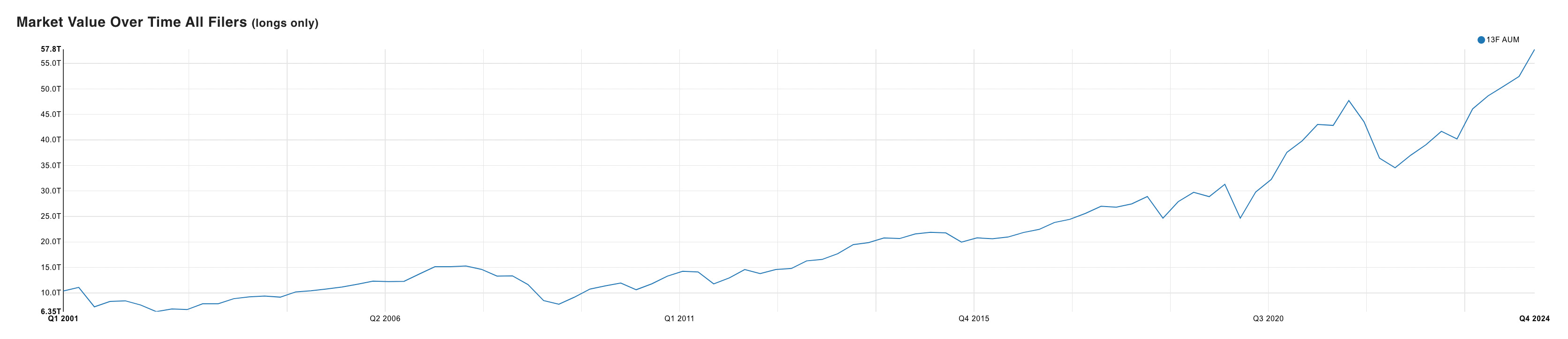 In Q4/2024, the total value of long positions by institutional investors increased 9.47% to 57.8 trillion USD, a record high.