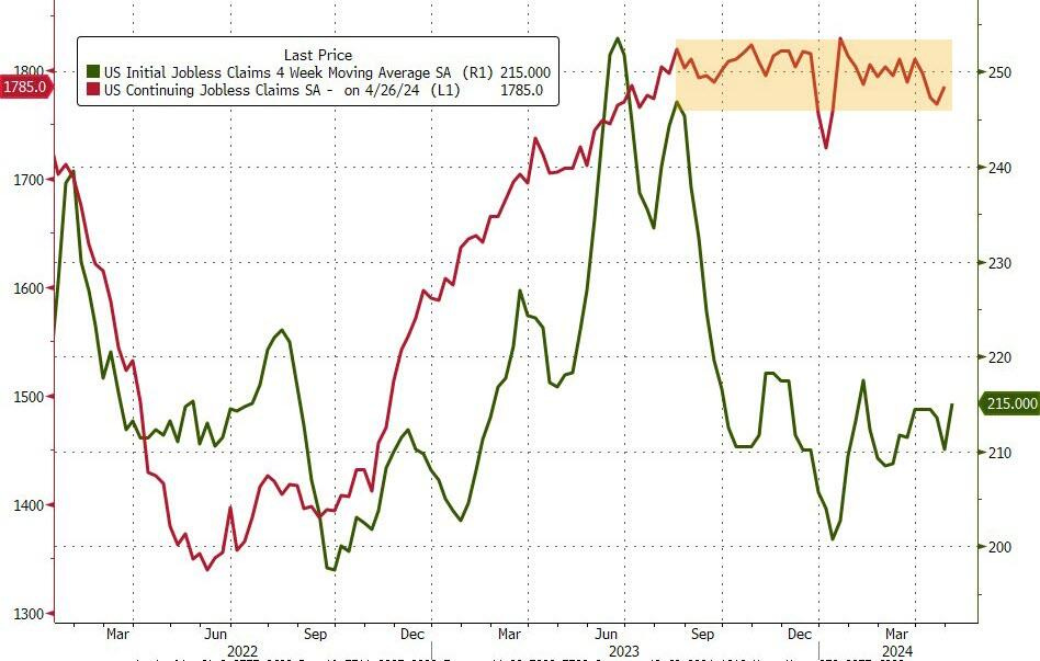Number of continuing claims for the week ending 05/05 rose to 1.785 million.