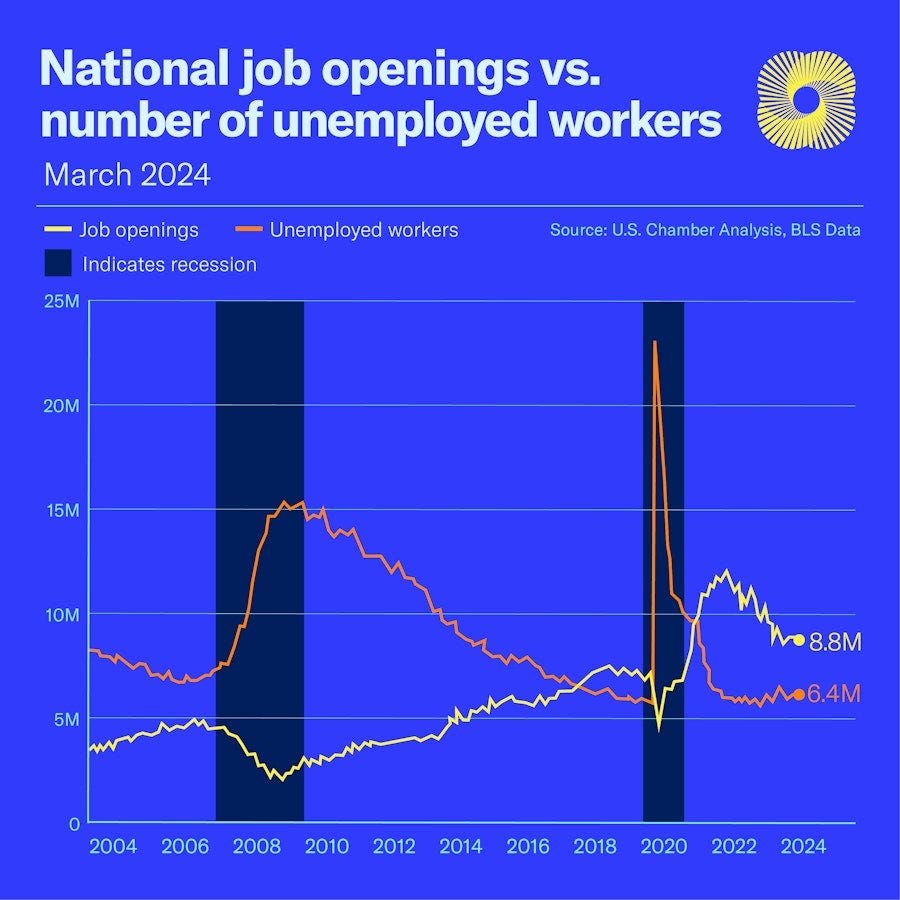 The gap between job openings and the number of unemployed is very large but gradually narrowing.