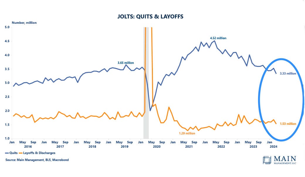 The layoff rate has currently decreased to 1.53 million, lowest since December 2022.