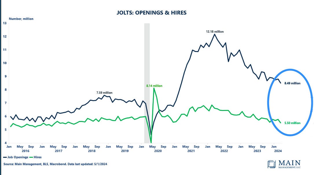 The US labor market, with numerous data points such as the BLS Employment Report, JOLTs, or unemployment claims, serves as a compass guiding the economy. By tracking factors like the unemployment rate, labor force participation rate, wage growth, and job openings, investors and policymakers can assess the health of the economy, workers' bargaining power, inflationary pressures, and consumer spending trends.