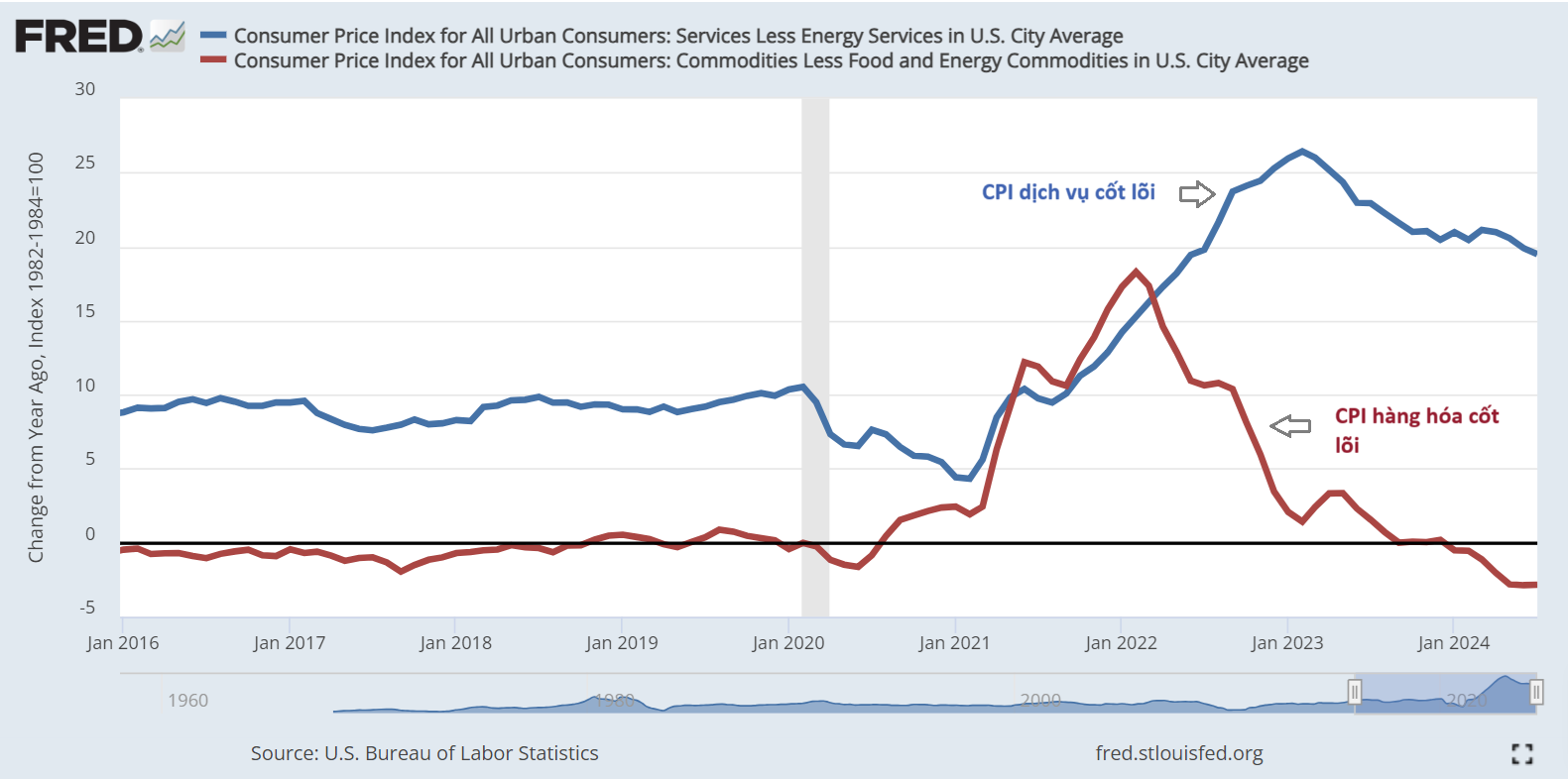 As mentioned above, services are the factor making inflation stubborn in the CPI or PCE basket, due to 2 main factors: