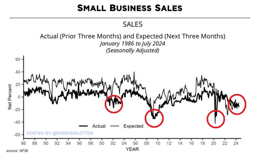 Only large businesses have high profit margins (partly due to automation)… while small businesses have alarmingly recessionary sales.