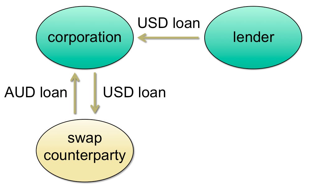 Company A (in Australia) can only issue bond debt in USD, but this company needs AUD (Australian Dollar) to operate in Australia.