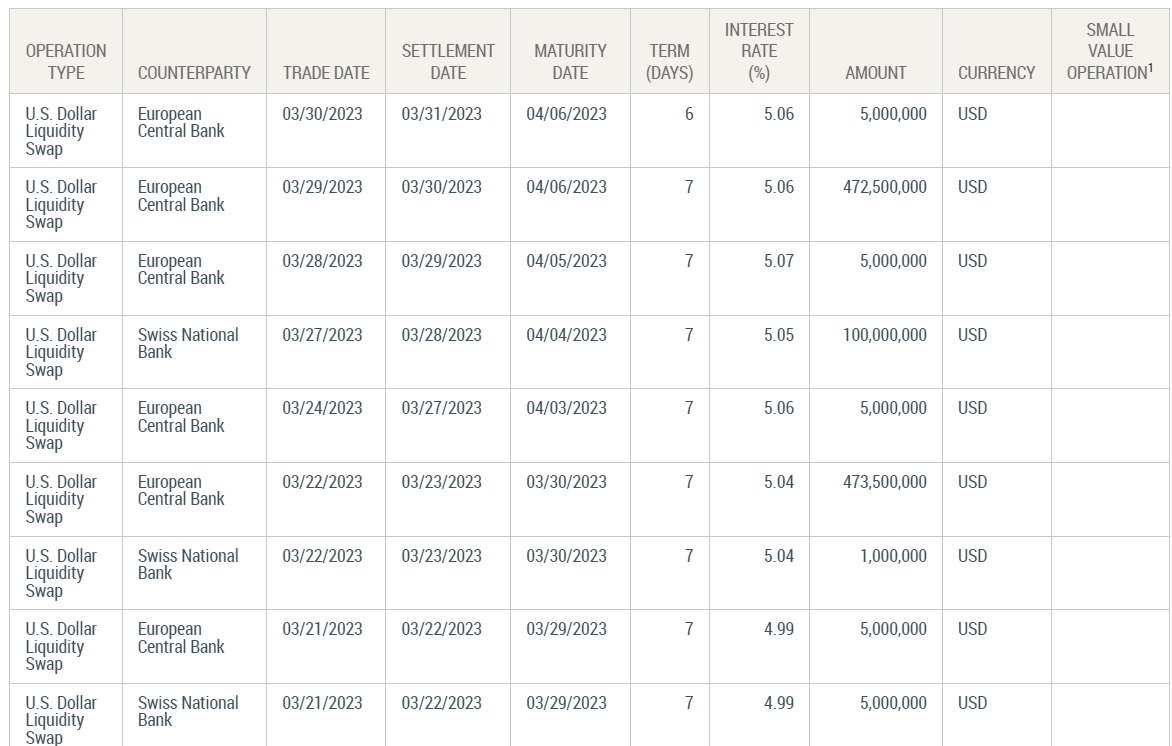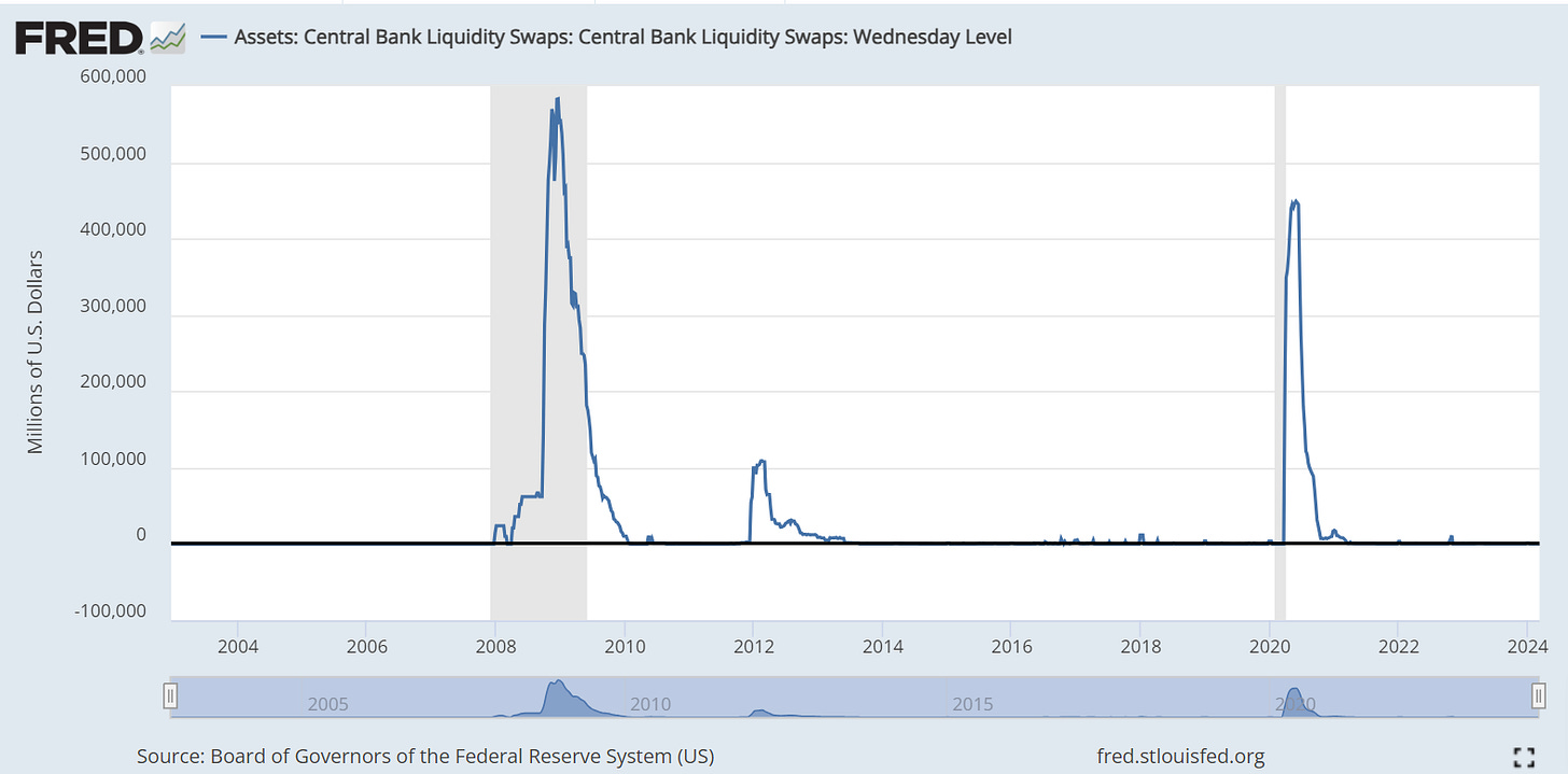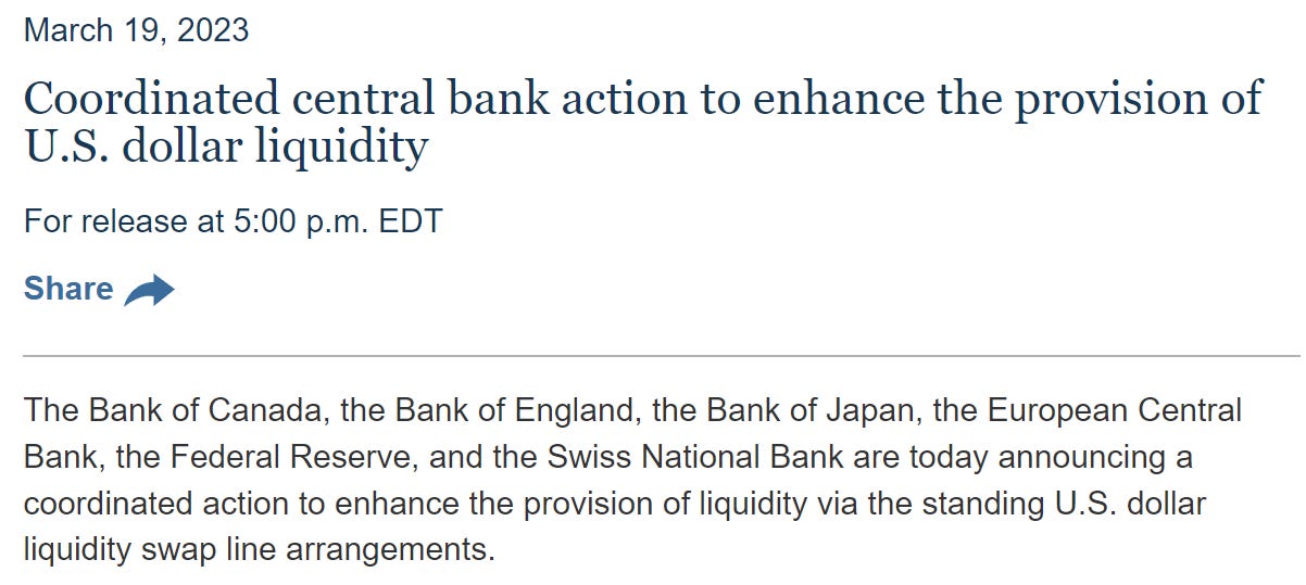 In March 2023, amid the regional banking crisis, the Fed and 5 major central banks worldwide announced a currency swap agreement.