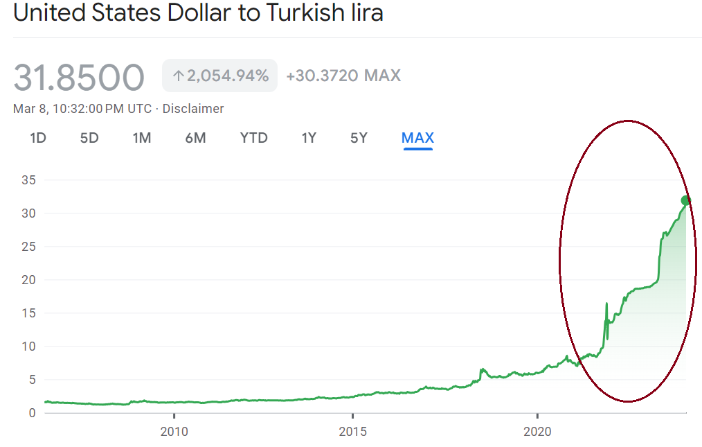 As a result, commercial banks in Turkey dumped the Lira en masse to obtain USD… causing the Lira to depreciate uncontrollably to this day.