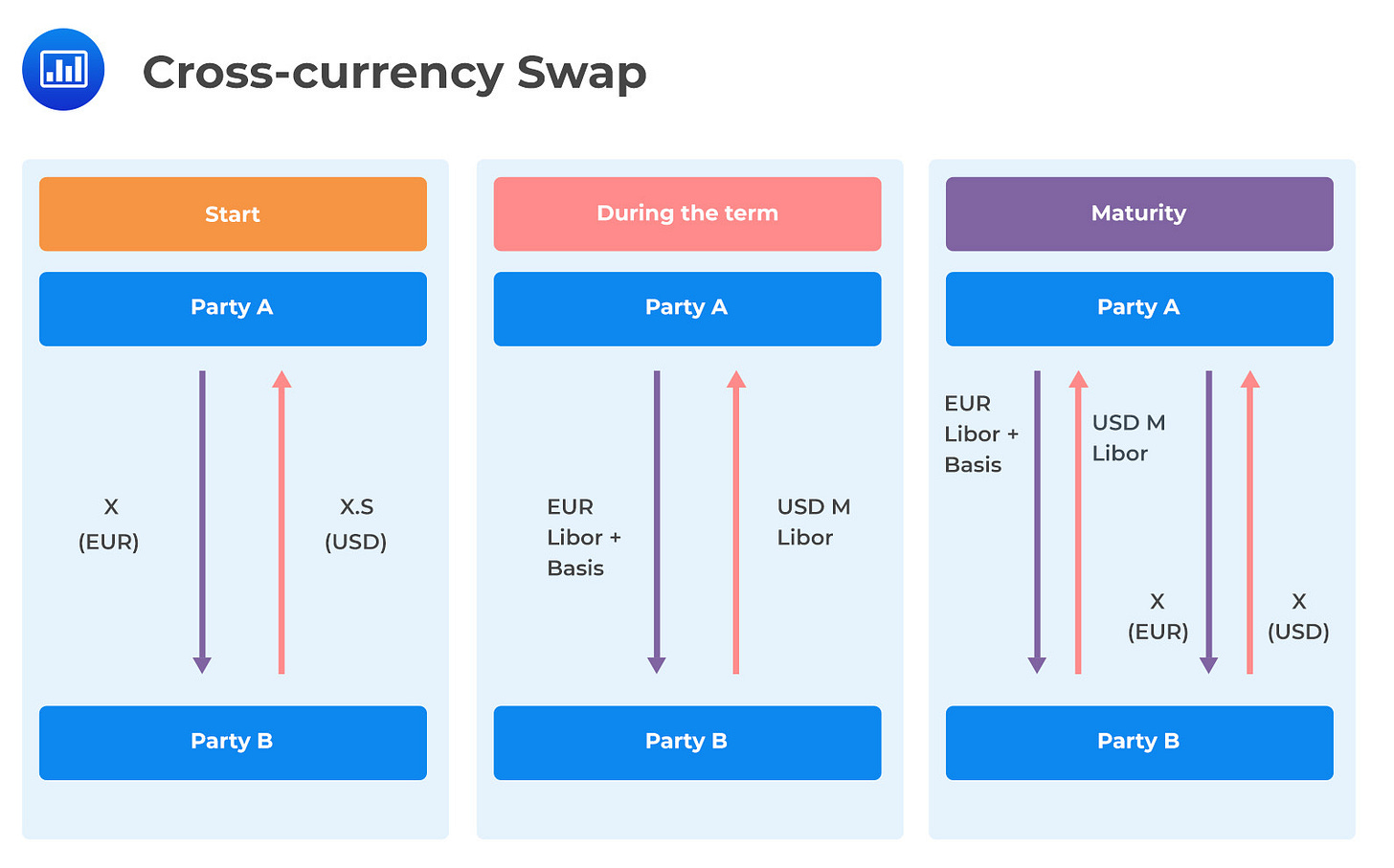 FYI: Furthermore, this mechanism can be implemented between multiple parties and currencies; and can include complex interest rate and currency swaps (cross-currency interest rate swap - figure below).