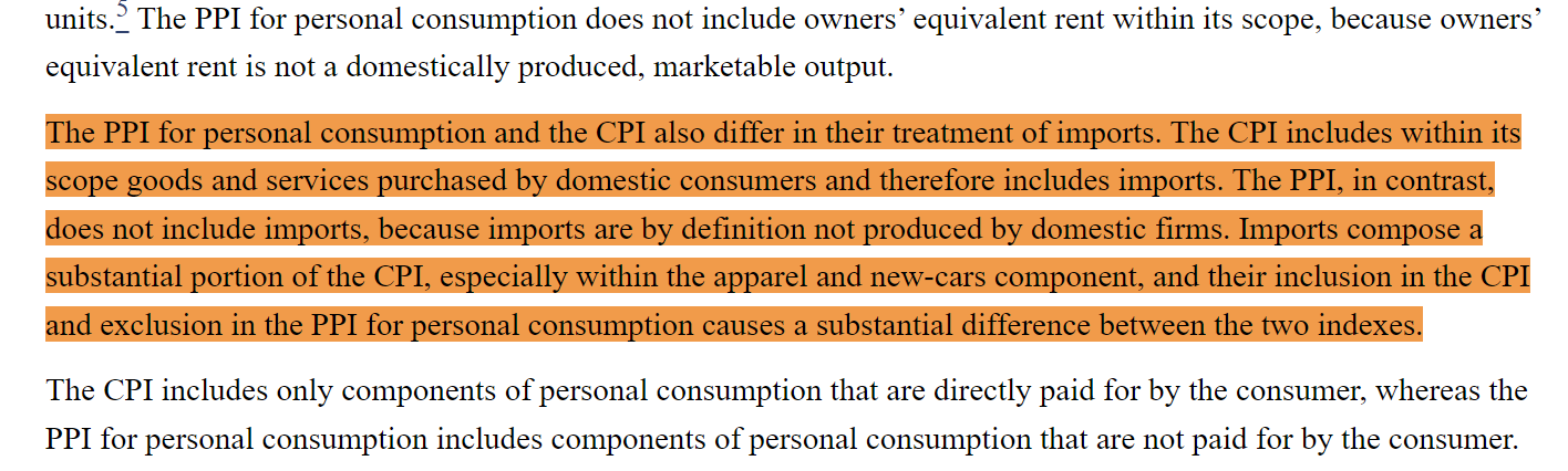 Additionally, PPI mainly measures goods, while CPI measures both goods and services.