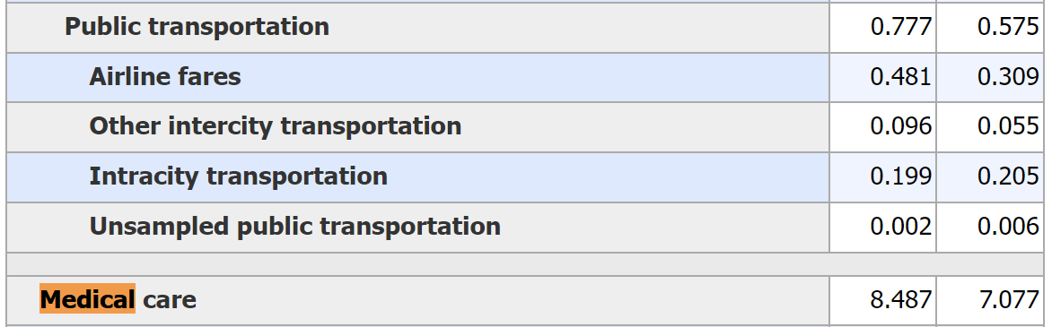 Conversely, CPI: the healthcare sector weight is 8% because it does not measure third-party healthcare reimbursements (such as insurance).