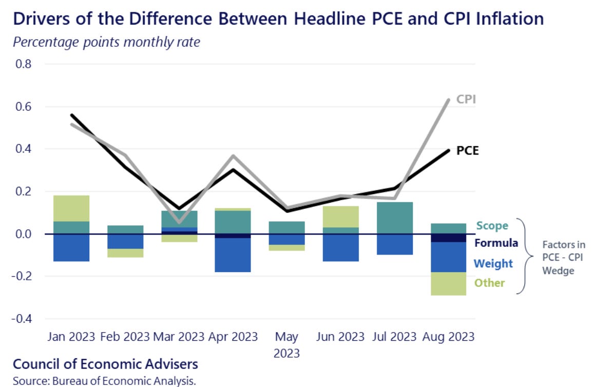 Scope: CPI only measures spending of urban households, while PCE measures spending on goods and services by all households and nonprofit organizations.