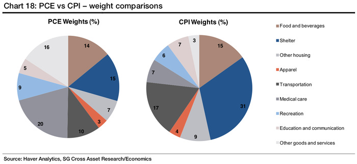 Differences in airline ticket price data: CPI calculates for the airline travel industry and fixed routes. PCE is based on passenger revenue and passenger miles flown.