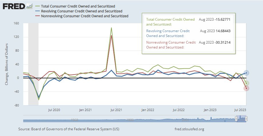 Non-revolving consumer credit loans in the US have also unexpectedly declined: