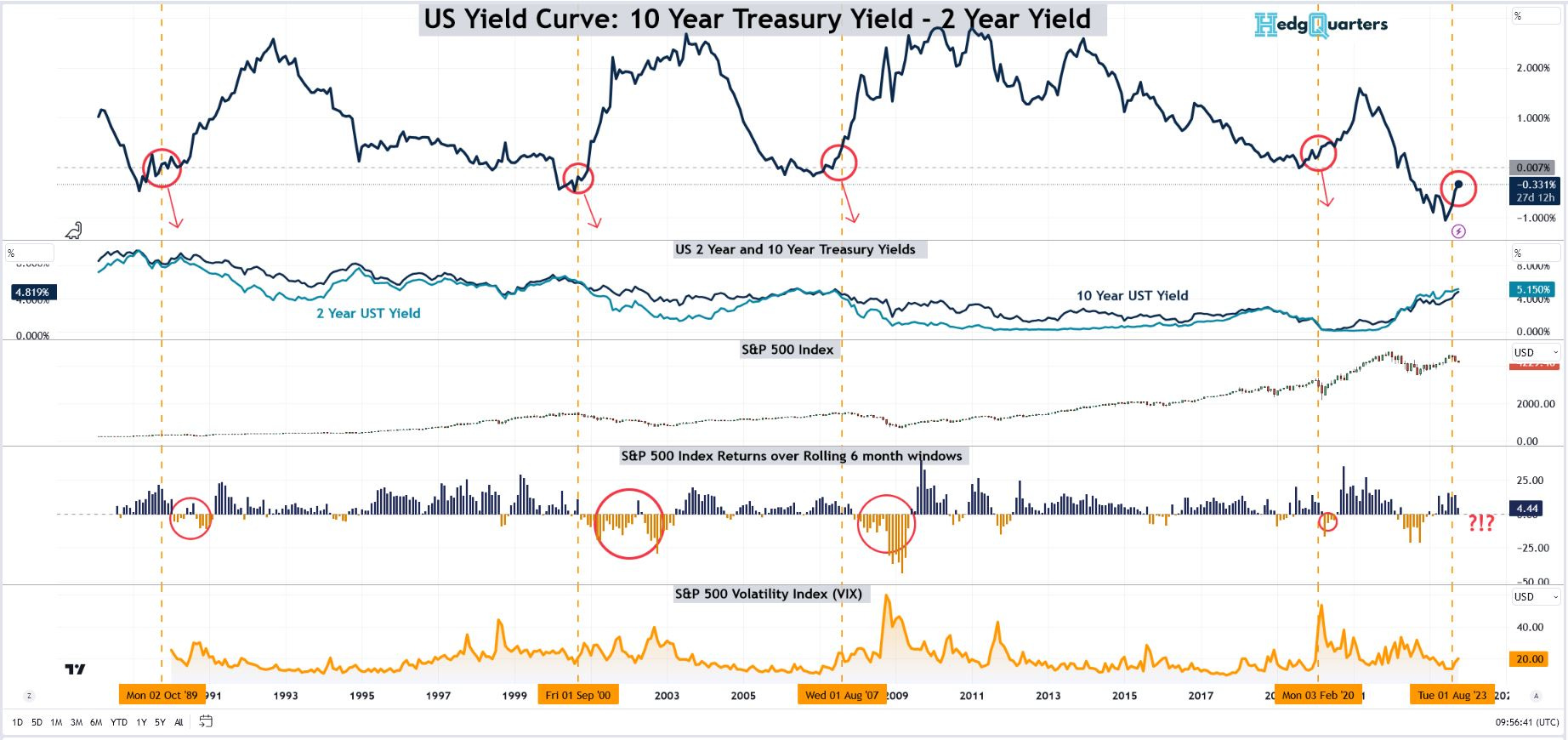 It's also not wrong to say that the yield curve, which was inverted, turning back to steepen due to “bear-steepening” is a sign of recession, but only under the condition of a high interest rate environment (which is the current situation).
