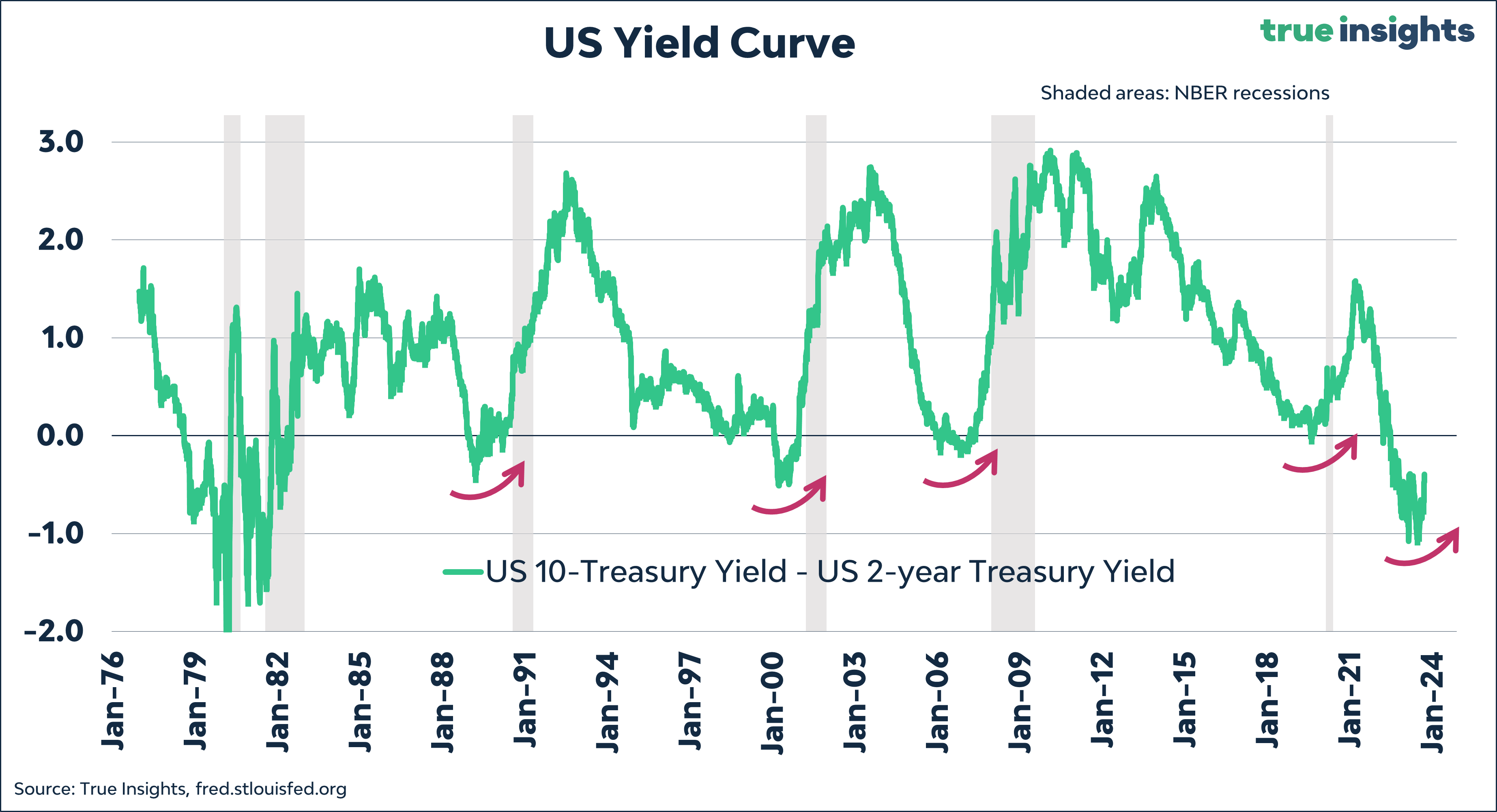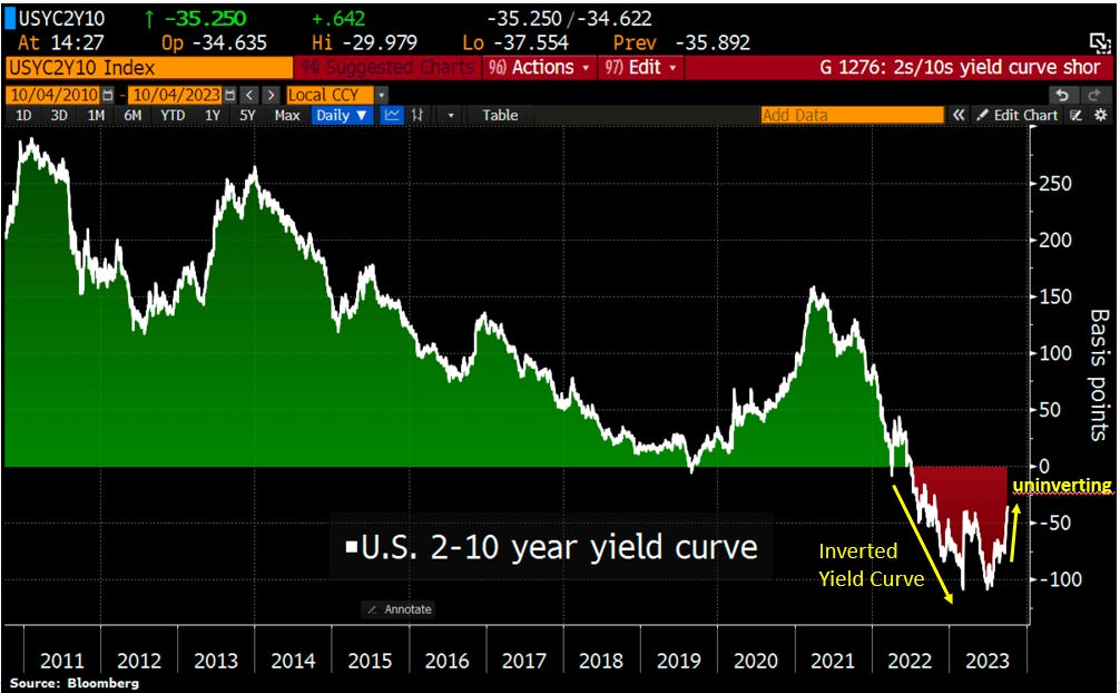 Is the yield curve that was inverting but rising again a sign of an economic recession?
