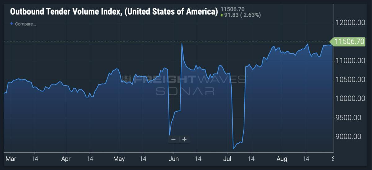 Electronic order volume (Outbound Tender Volume Index - OTVI) has increased since the beginning of the year and remained stable, except for holidays.