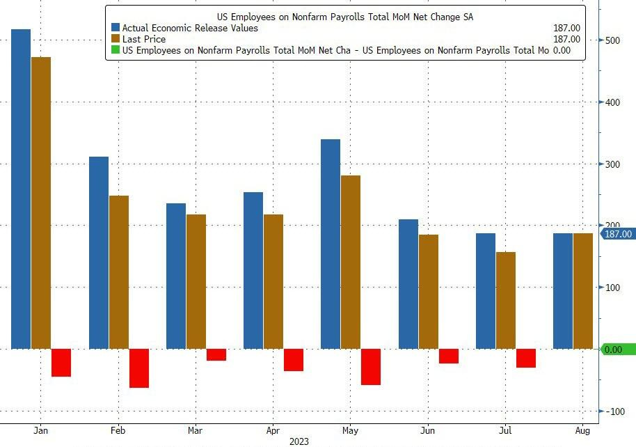 August nonfarm payrolls rose more than expected, reaching 187,000 jobs compared to 157,000 jobs last month.