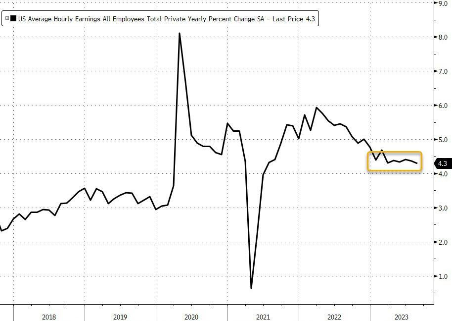 Average hourly earnings rose 0.2% from the previous month, up 4.3% from a year ago. Both increases were below forecasts. Overall, job growth and wage growth slowed to levels consistent with stable inflation.