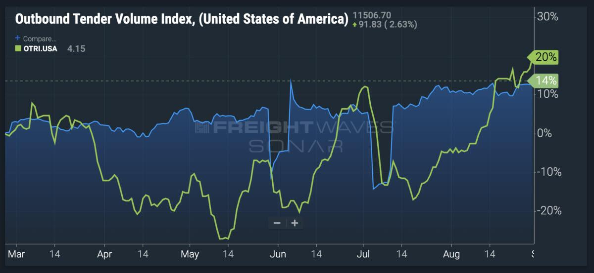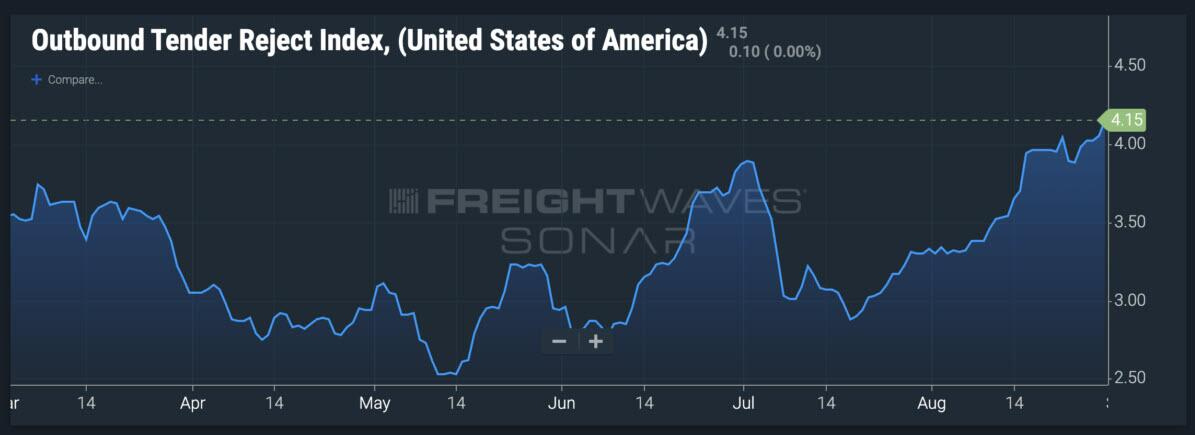 However, while demand is increasing, the rejection rate by carriers is also rising, indicating too much truck (capacity) available for freight loads.