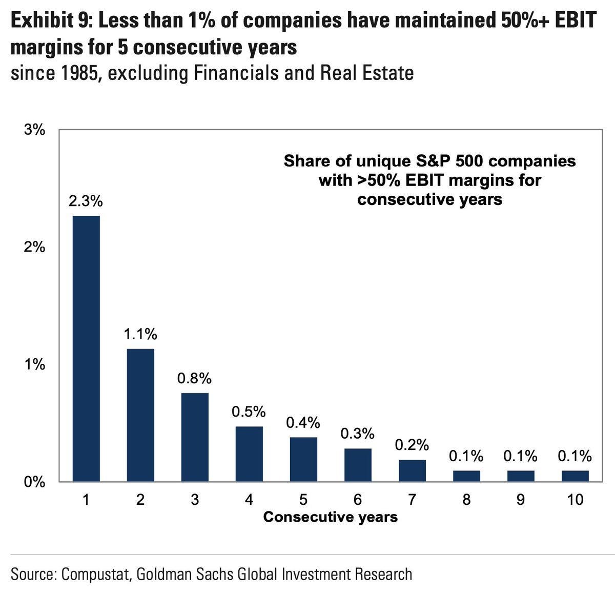 FYI: <1% các công ty S&P500 (không bao gồm tài chính và bất động sản) duy trì EBIT margin trên 50% trong 5 năm liên tiếp kể từ năm 1985.