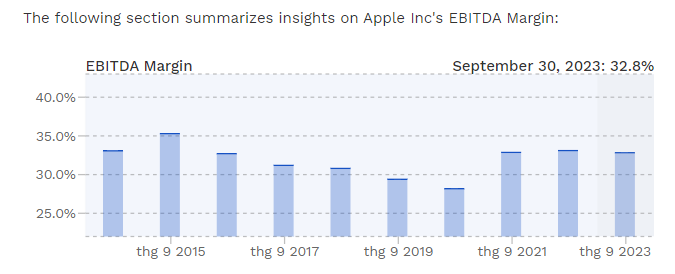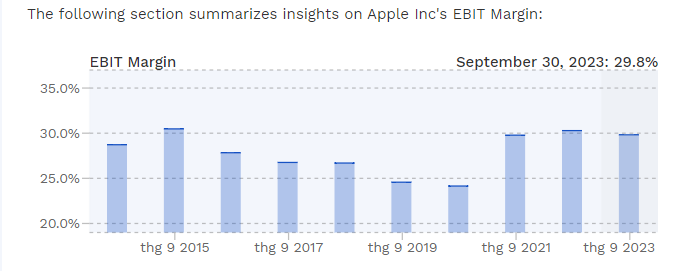 Ví dụ EBIT margin của Apple (tính đến tháng 9/2023):