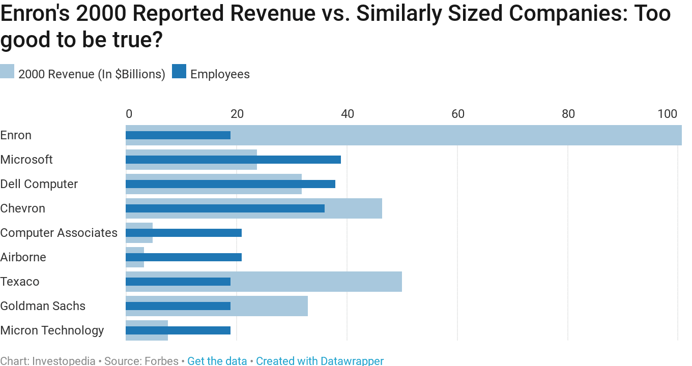 (Microsoft's revenue at that time was just over 20 billion dollars, Chevron over 40 billion dollars but Enron's revenue reached over 100 billion dollars)
