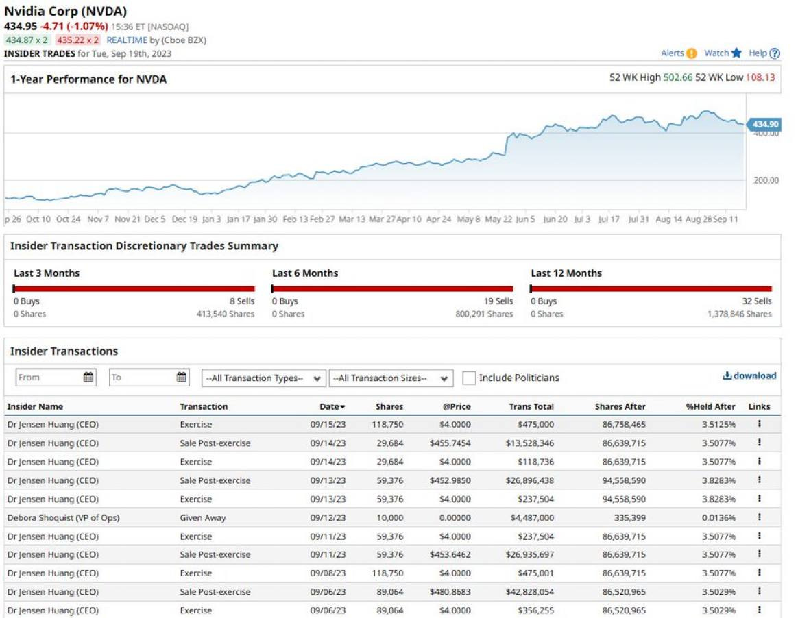 NVIDIA CEO Jensen Huang continues selling 13.5 million USD in stock . Since June 9, he has netted a total of 110 million USD from selling shares.