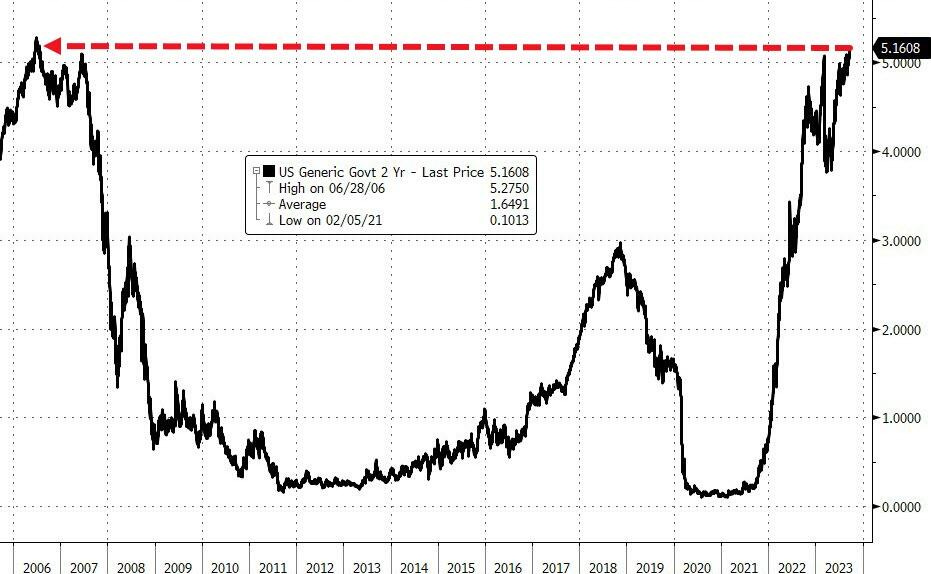 Bond yields surge with 2Y hitting highest since 07/2006