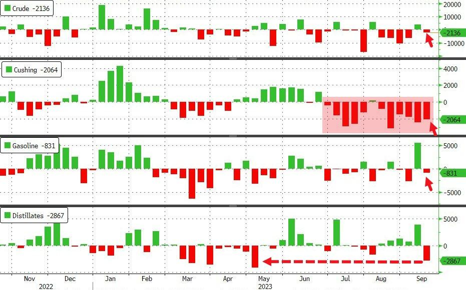 According to the report, all crude oil inventories fell more than expected. Specifically: