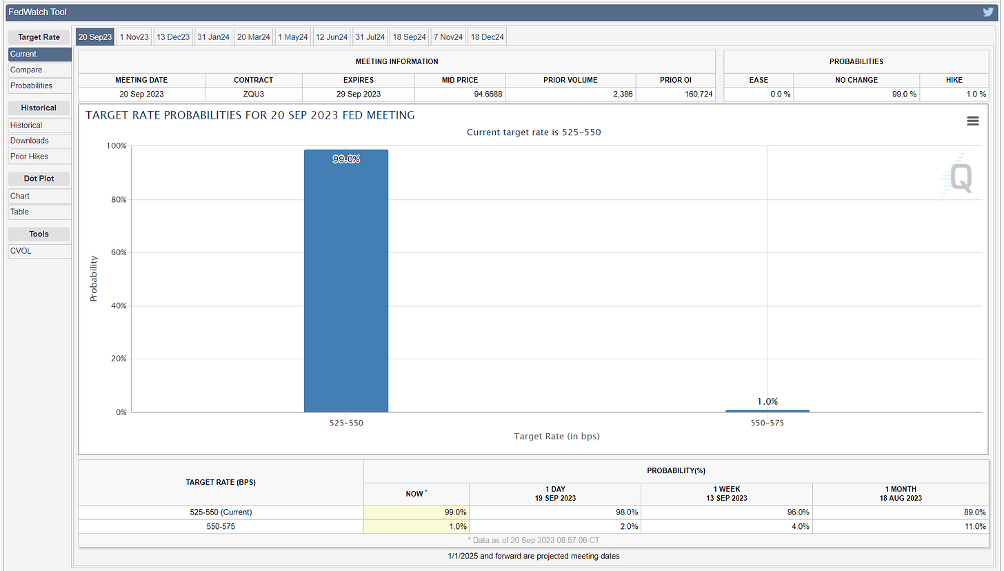 FOMC summary this afternoon 09/20/2023: