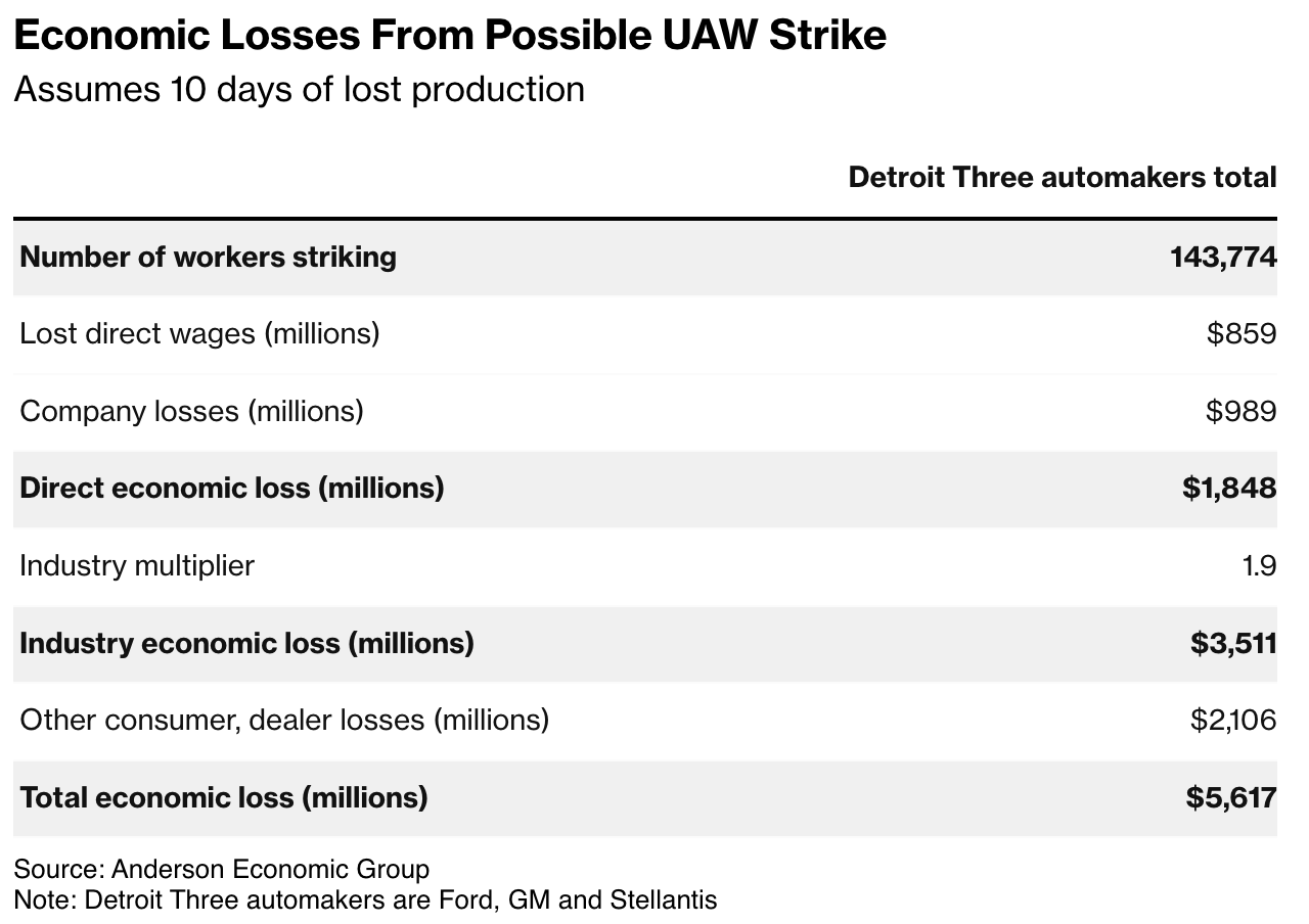 This week, Ford laid off 600 workers to reach last-minute deal to avoid strike in Canada on Tuesday. Stellantis considering closing 18 plants to continue negotiations.