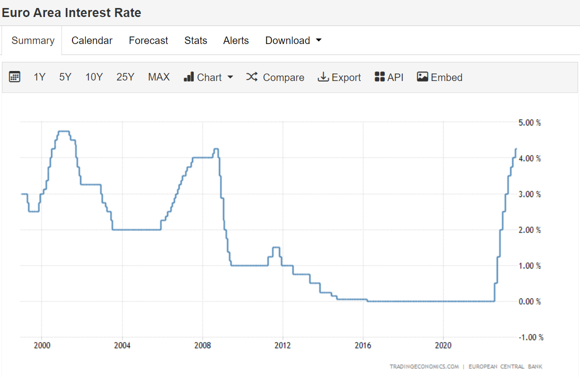 It should be emphasized that: The ECB has raised interest rates 11 consecutive times in this cycle, with cumulative increase of +4.25%.
