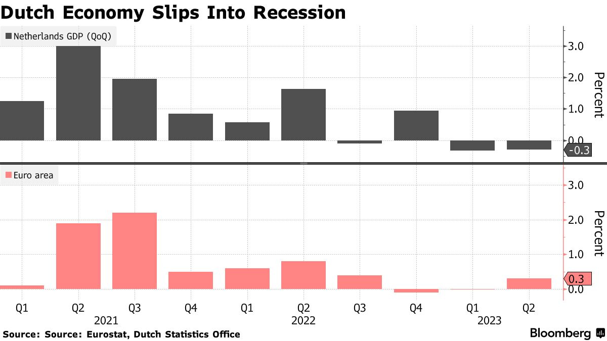 Official recession began in the Netherlands as GDP fell -0.3% consecutively in the first two quarters.