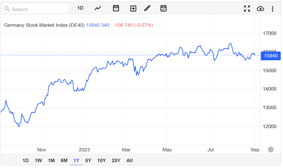 Germany's DAX 30 stock index fell -0.6% last Friday, led by the decline in automotive industry value (Germany's spearhead manufacturing sector).