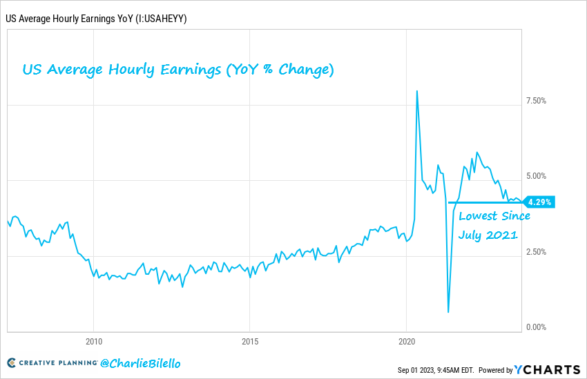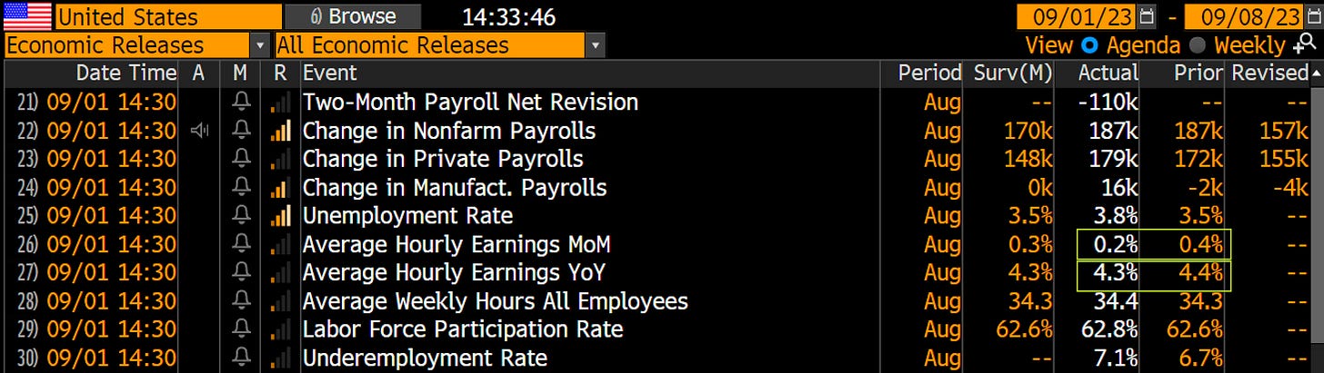 Hourly wage growth rate increased +4.29% y/y in August, still high but the slowest growth rate since July 2021.