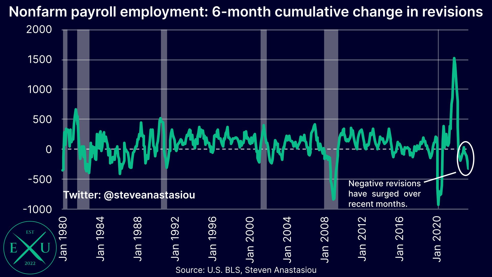 Such large downward revisions are currently only seen in the recessions of 1980, 1981-82, 1990-91, the 2008 financial crisis, and COVID.